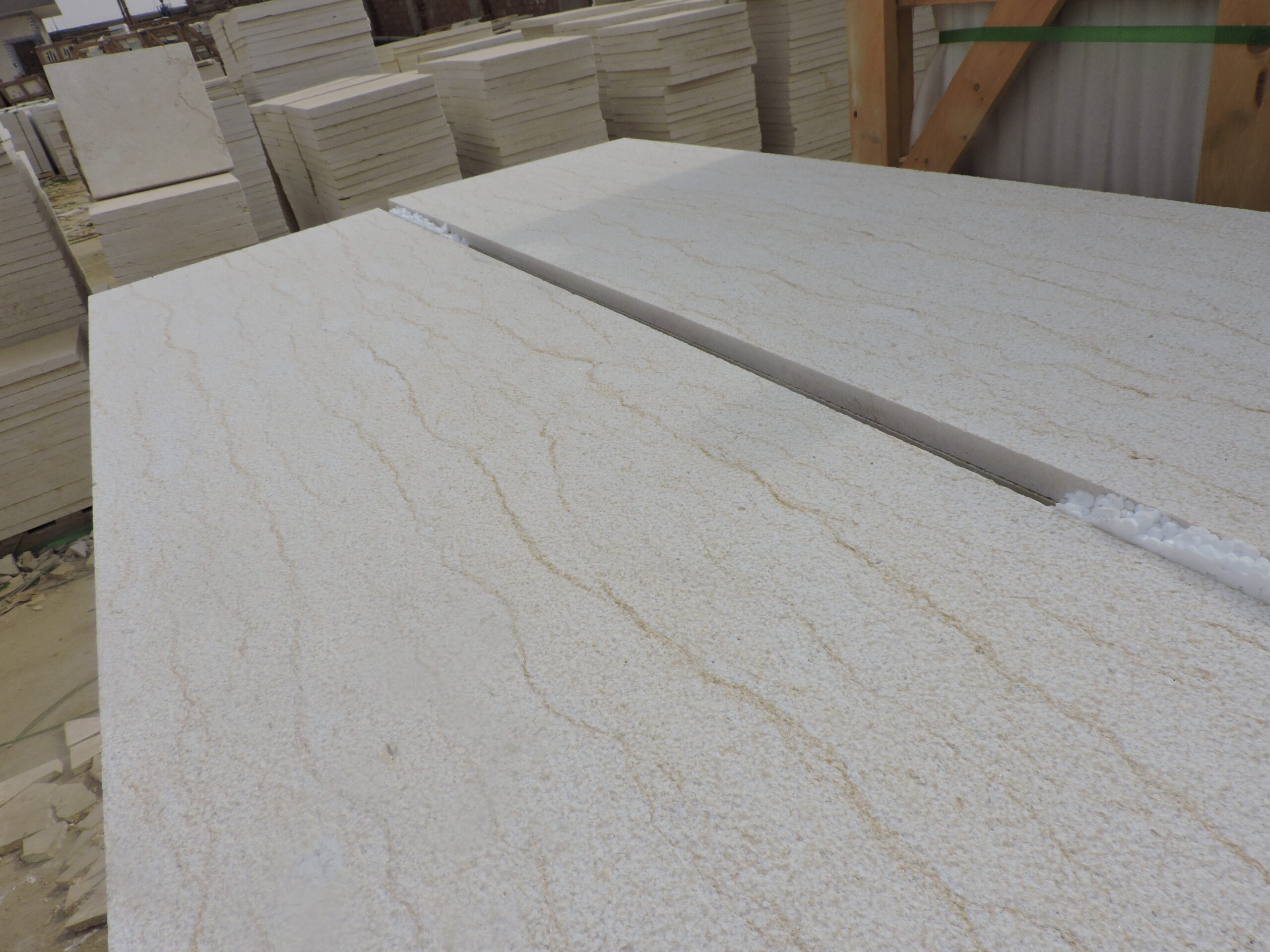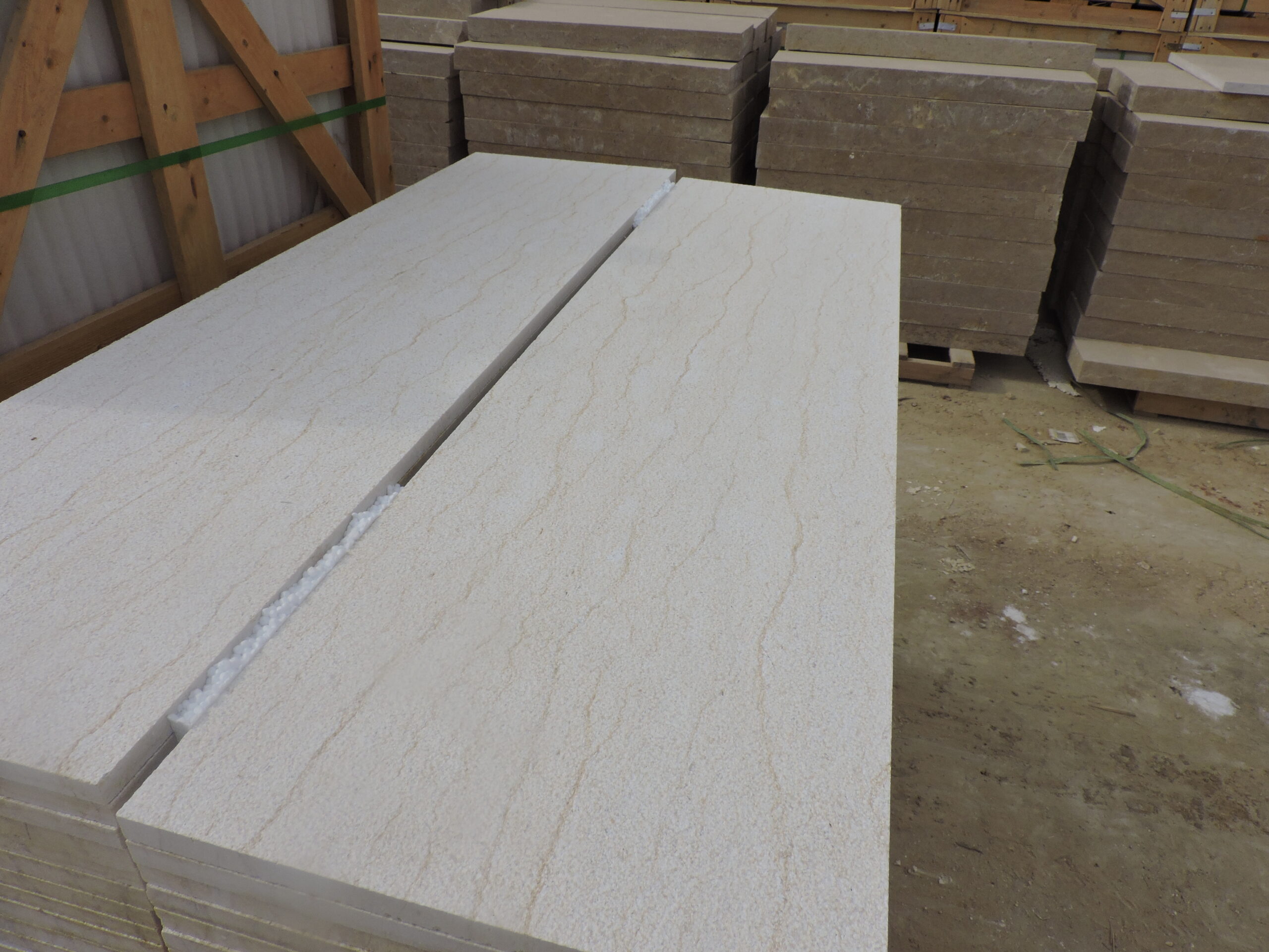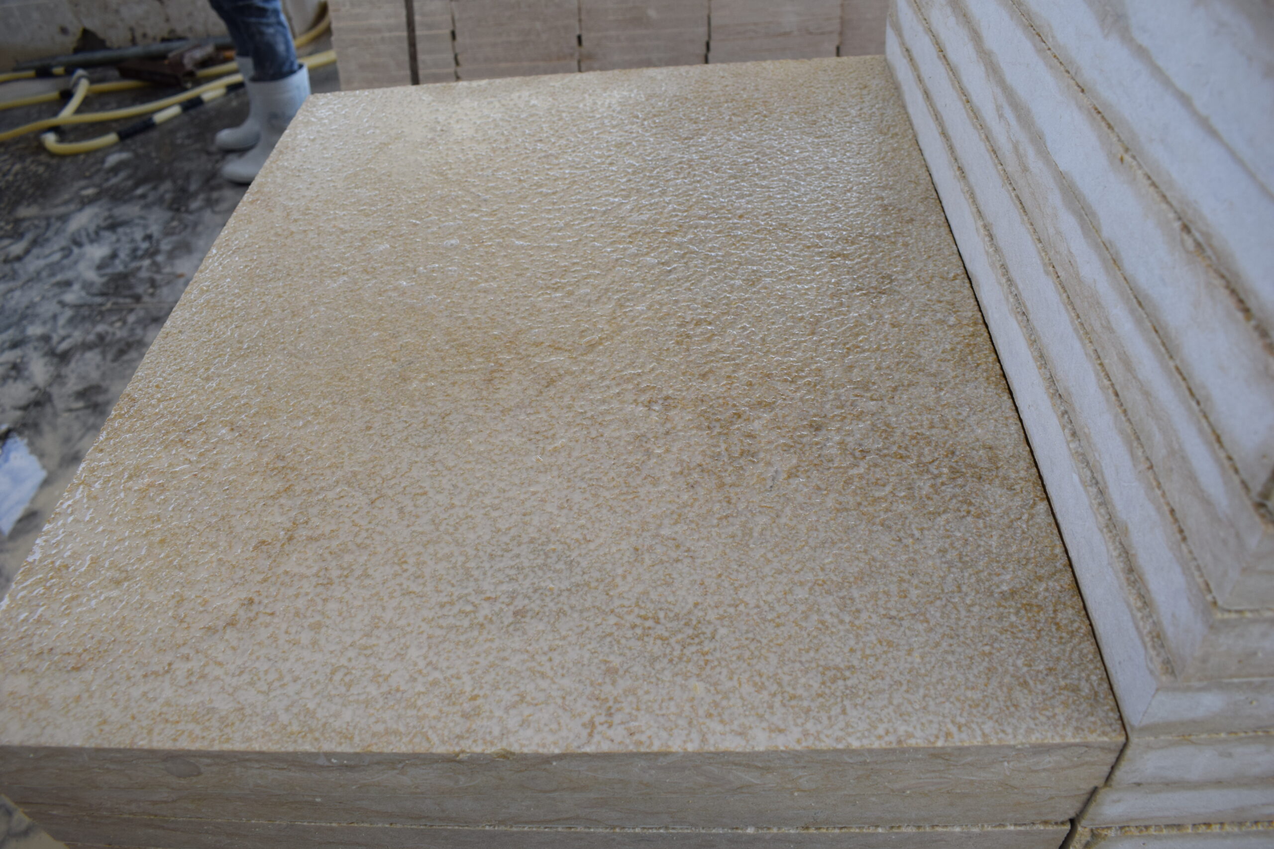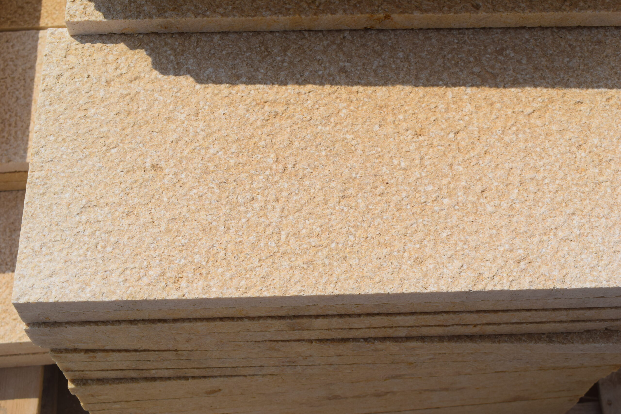 The Bush Hammered Finish is made using a high-impact machine that creates pits of different sizes. Similar to a flamed surface, the bush hammered finish has a rough, textured appearance and an aged, natural look.