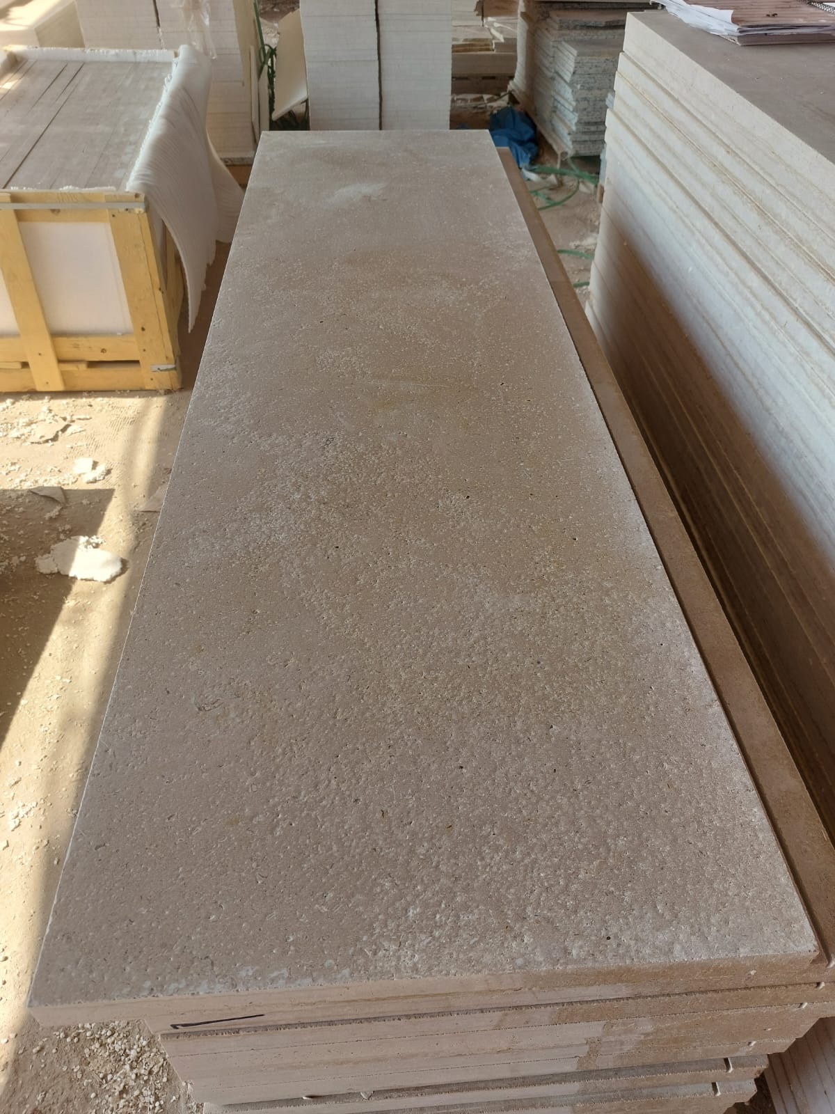 – This Limestone is very popular in (France – UK – Australia – Germany – Ireland – Austria – Poland – Spain – Belgium …) and required in special finishes like (Tumbled + Brushed / Tumbled + Acid / Tumbled + Honed / Tumbled + Sandblasted…)