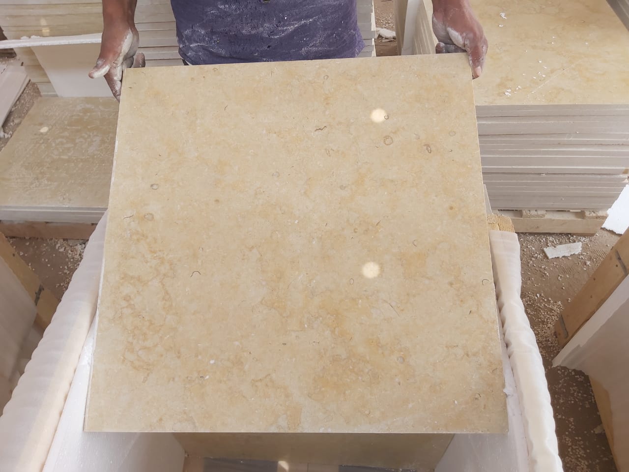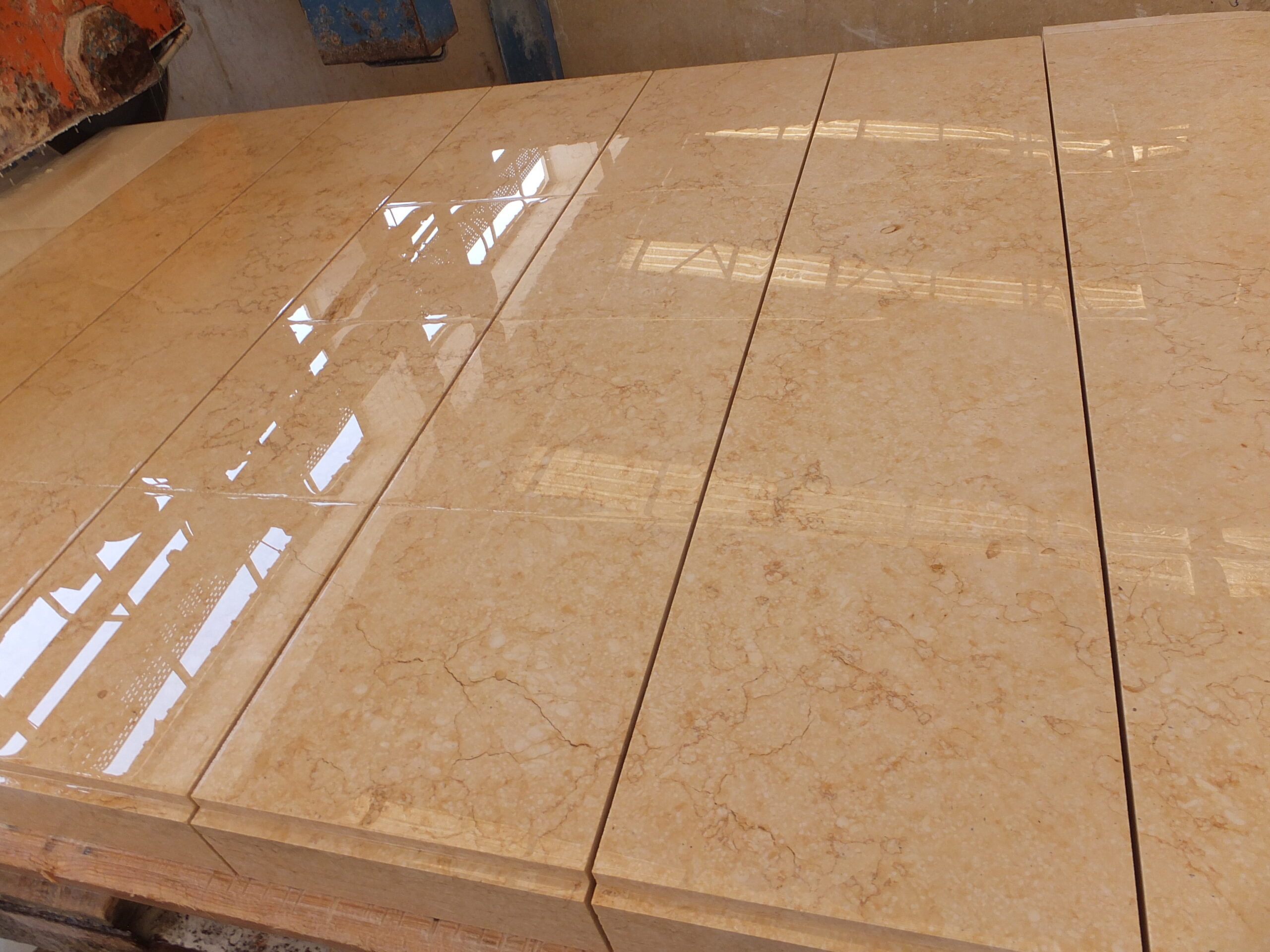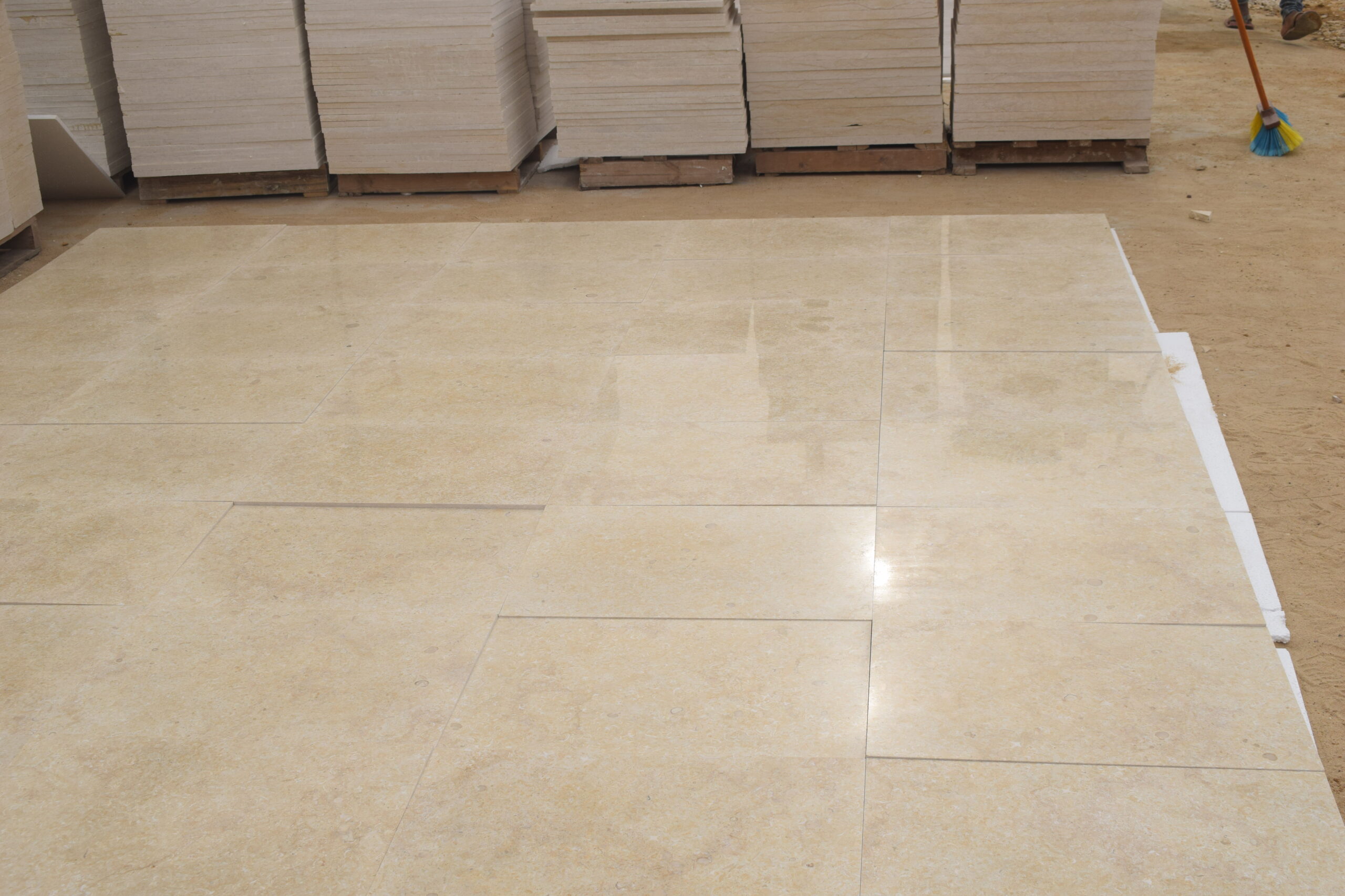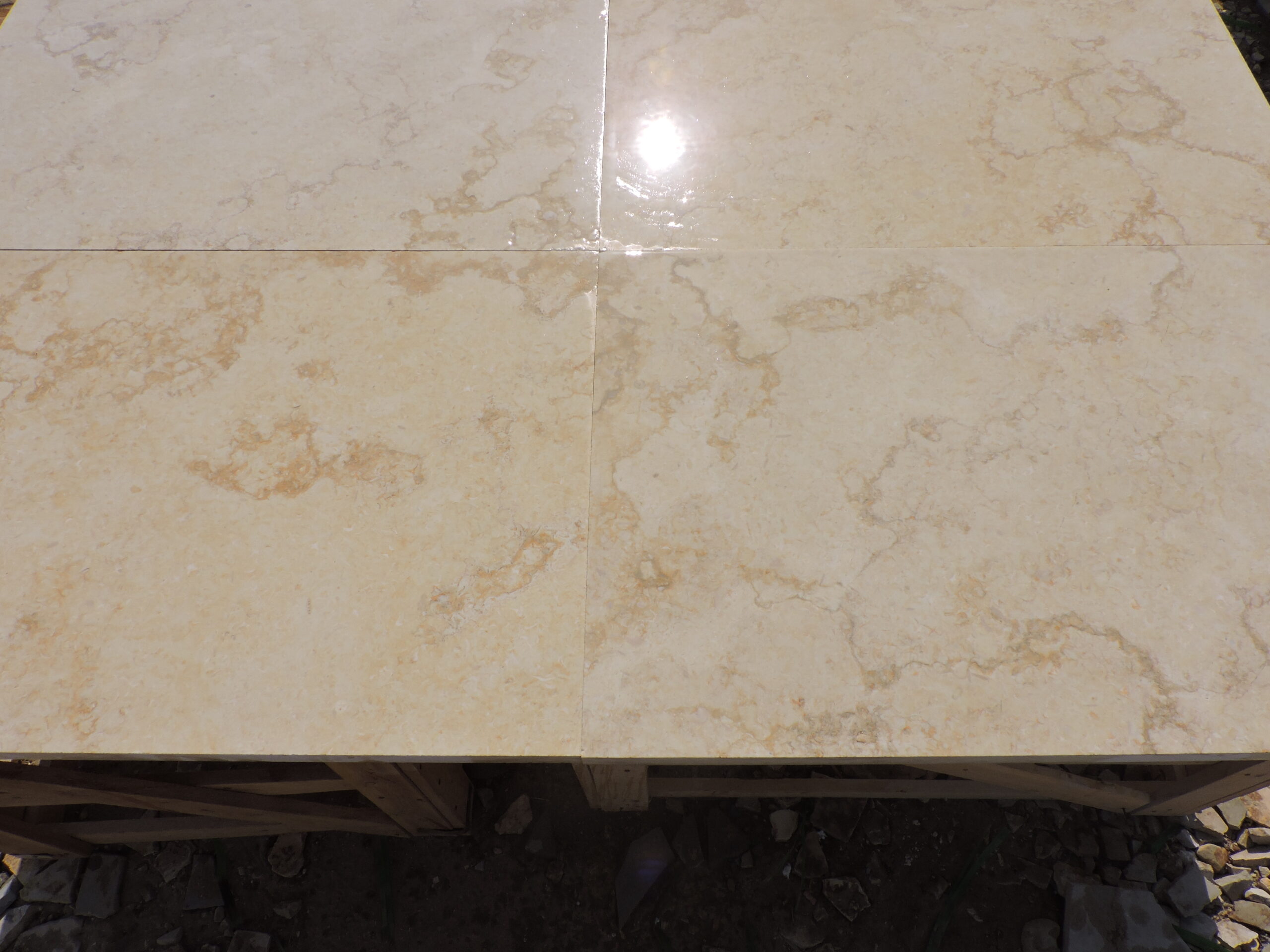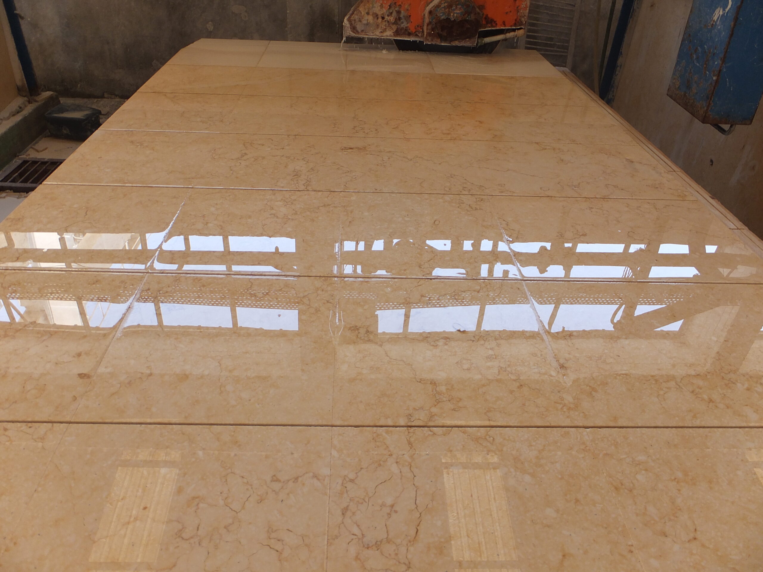 It shines like a mirror, creates a natural look that is reflecting light. The surface is treated with resin or epoxy to close the pores of stones which make the polishing on it much than better.