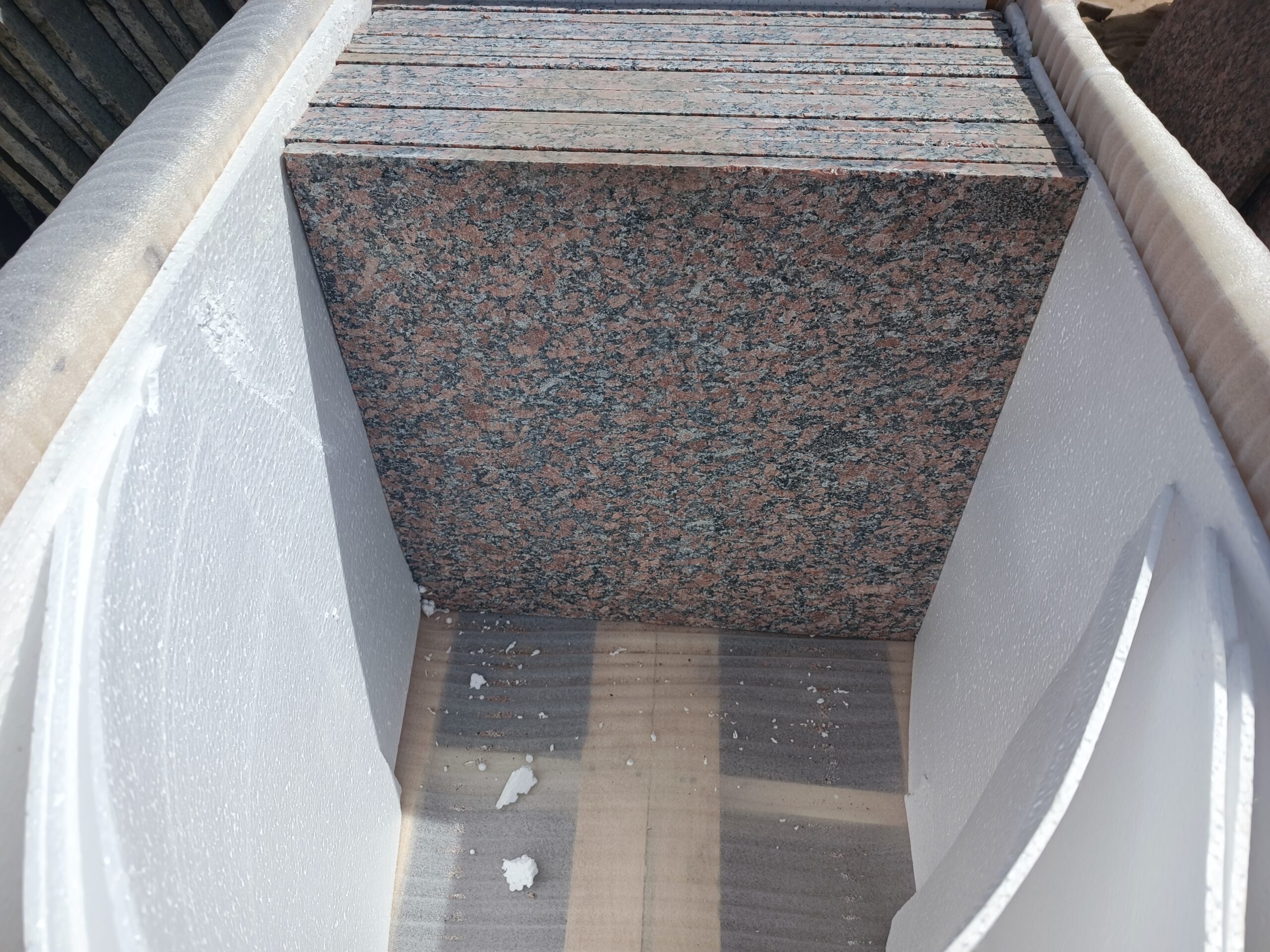 – Finishes available for Red Aswan Granite include Polished, Flamed, Sandblasted, Flamed + Brushed… We also provide an extensive range of granite edge profile options such as chamfered edge profile or Bullnose coping…